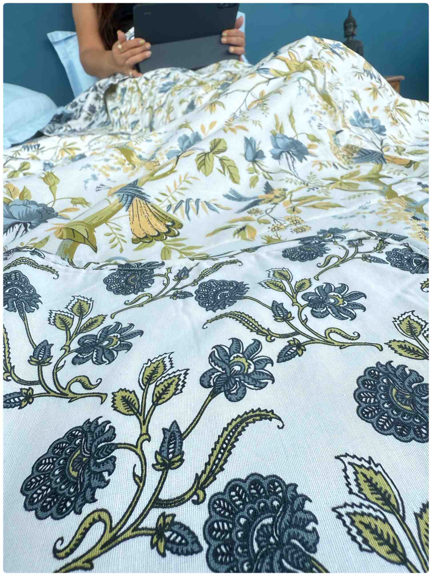Dohar blankets are lightweight and suitable for all parts of India.They provide comfort on summer nights with a light AC dohar and warmth during winter.Cotton is widely recommended for dohars due to its natural breathability, softness, and ability to regulate temperature.