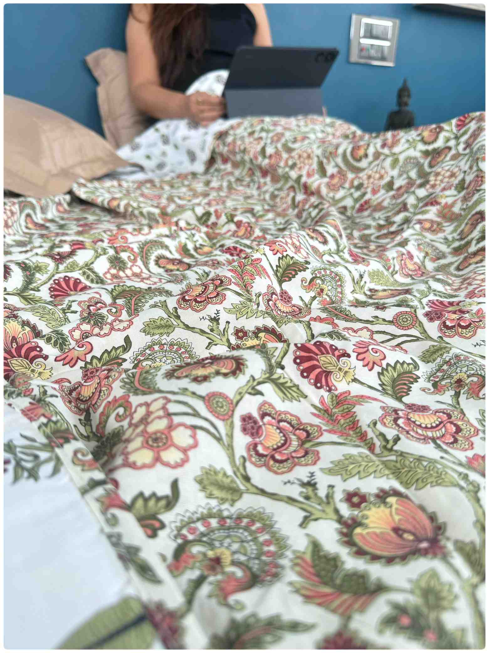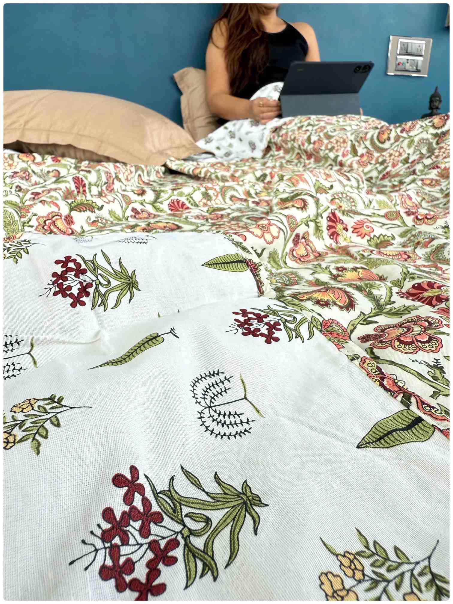 Dohar blankets are lightweight and suitable for all parts of India.They provide comfort on summer nights with a light AC dohar and warmth during winter.Cotton is widely recommended for dohars due to its natural breathability, softness, and ability to regulate temperature.