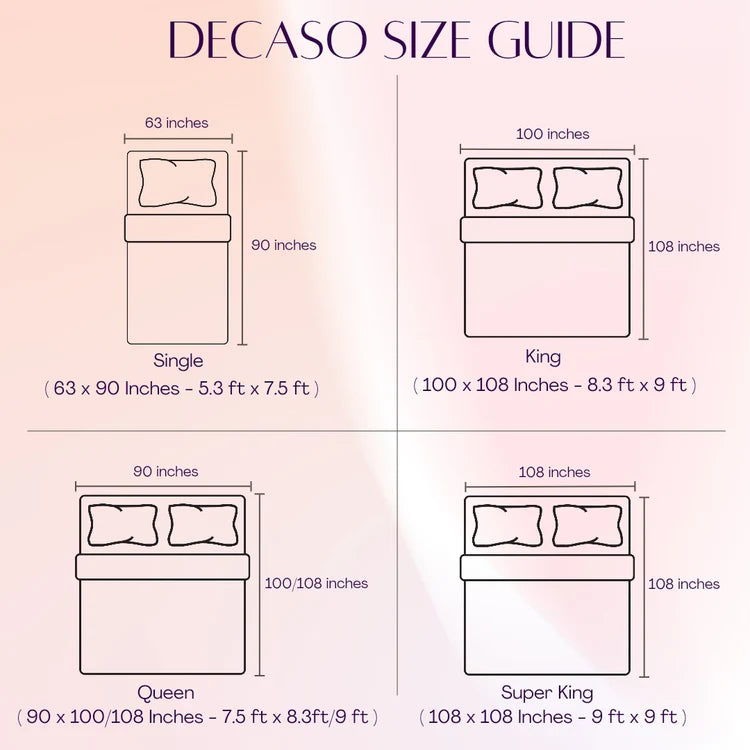 2. The size of the bedsheet is 108 x 108 inches or 274 x 274 cms